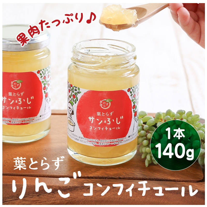 当農園の「葉とらずりんご」と「砂糖」「レモン果汁」だけを使い、果実感やすっきりとした甘さが楽しめる「コンフィチュール(ジャム)」。