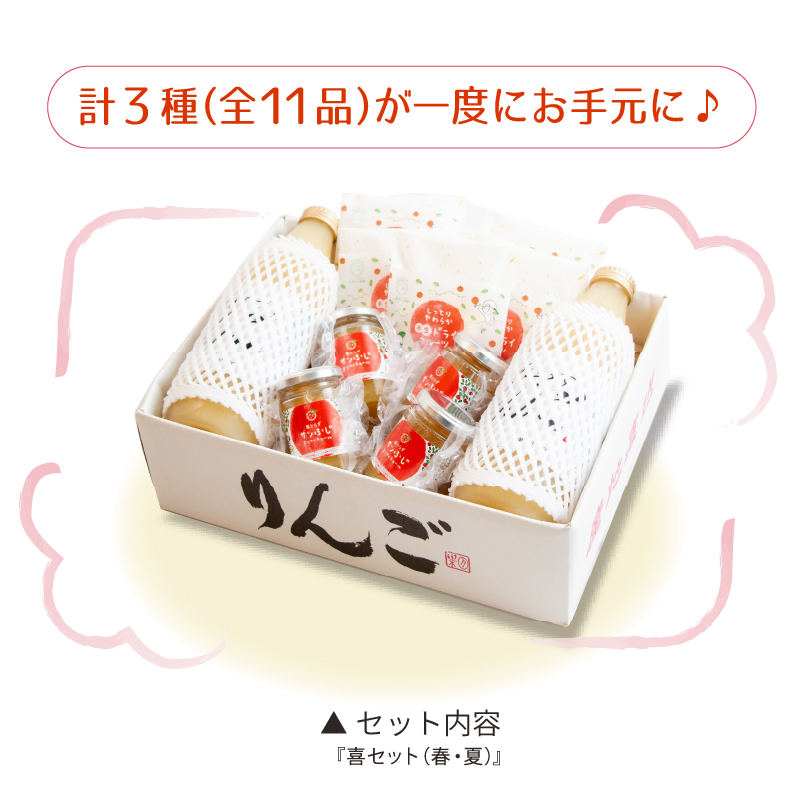 | 商品名 | 葉とらずりんご 喜(よろこび)セット[春・夏版] |